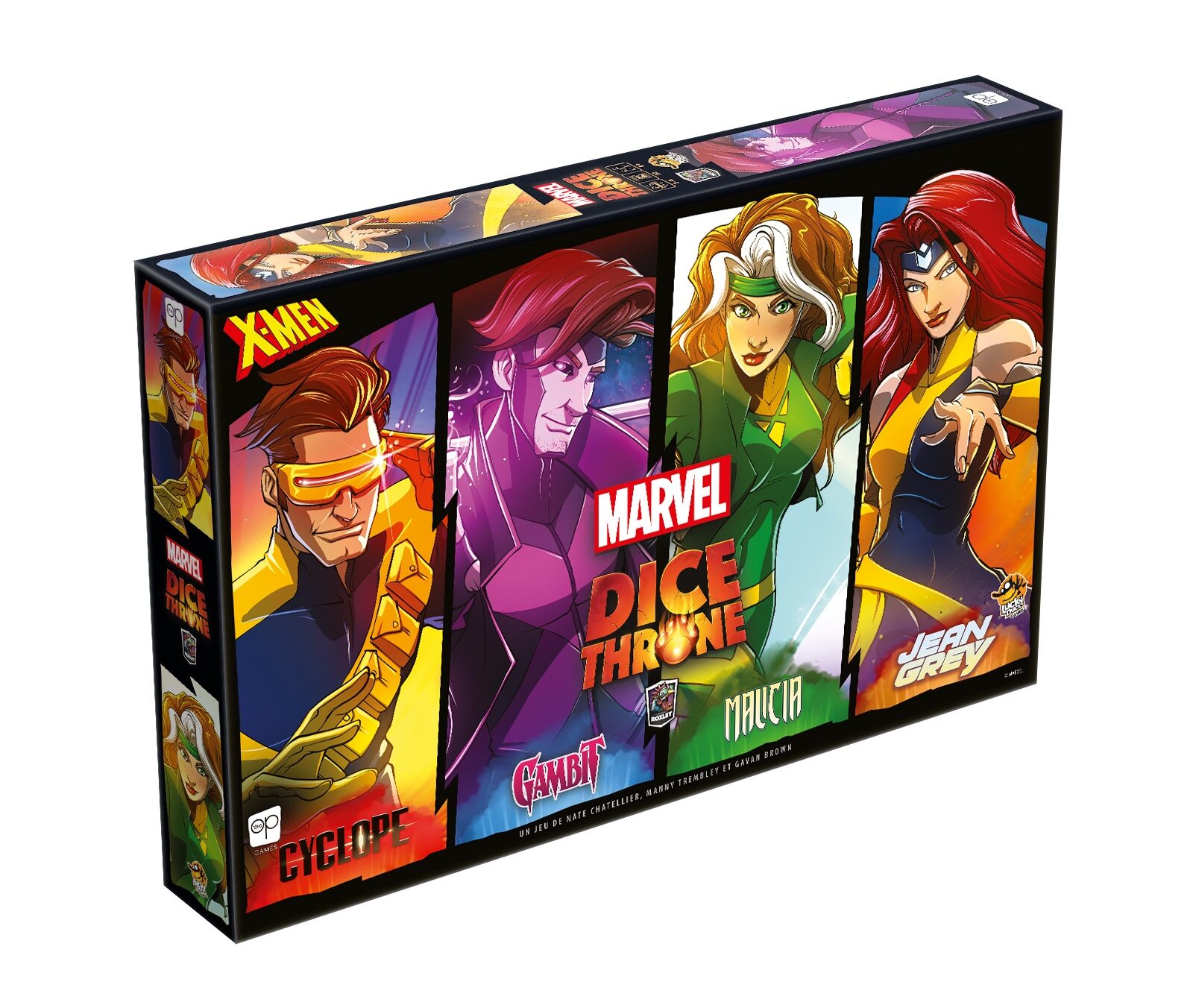 La copie de Marvel Dice Throne – X-Men : Cyclope, Gambit, Malicia, Jean Grey a été fournie par Lucky Duck Games.