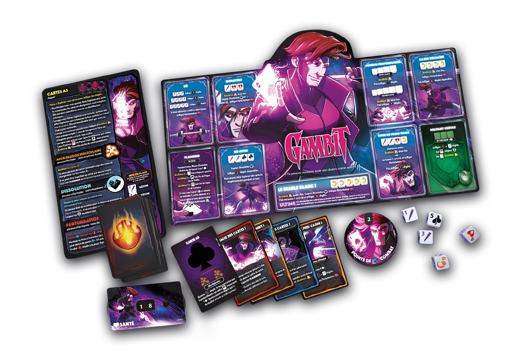 Rémy LeBeau, l’homme aux yeux rouges également surnommé « Le Diable blanc », a longtemps été un voleur au service de Mister Sinistre avant de trouver un véritable foyer auprès des X-Men. Grâce à son arme fétiche, un paquet de cartes à jouer chargées d’énergie cinétiques, ce héros promet des résultats explosifs !