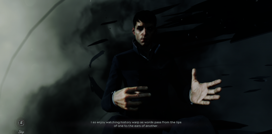 Ensuite, Billy Lush, l’acteur qui faisait la voix de l’Outsider dans le premier jeu, a été remplacé par Robin Lord Taylor. Son interprétation du Pingouin dans Gotham est tout à fait admirable, mais dans ce rôle-ci, il me laisse de glace. Dans le premier opus, l’Outsider m’intriguait grandement. Sa voix particulière s’agençait bien avec sa personnalité. J’avais toujours hâte de le rencontrer. Dans Dishonored 2, je trouve ses interventions non pertinentes. On en apprend enfin sur son passé, mais son histoire n’est que brièvement survolée, et en plus, elle est décevante.