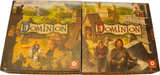 Démêlons la panoplie des différentes boites existante : Le premier jeu est « Votre Royaume commence ici ». Le nom est quand même évocateur. C’est le jeu de base et il contient assez de cartes pour s’amuser bon nombre de parties. Il y a ensuite « L’intrigue », qui constitue également en soi un jeu de base, c’est-à-dire qu’il est possible de jouer avec celui-ci sans avoir le premier. La combinaison de ces deux boites permet de jouer jusqu’à 6 joueurs.