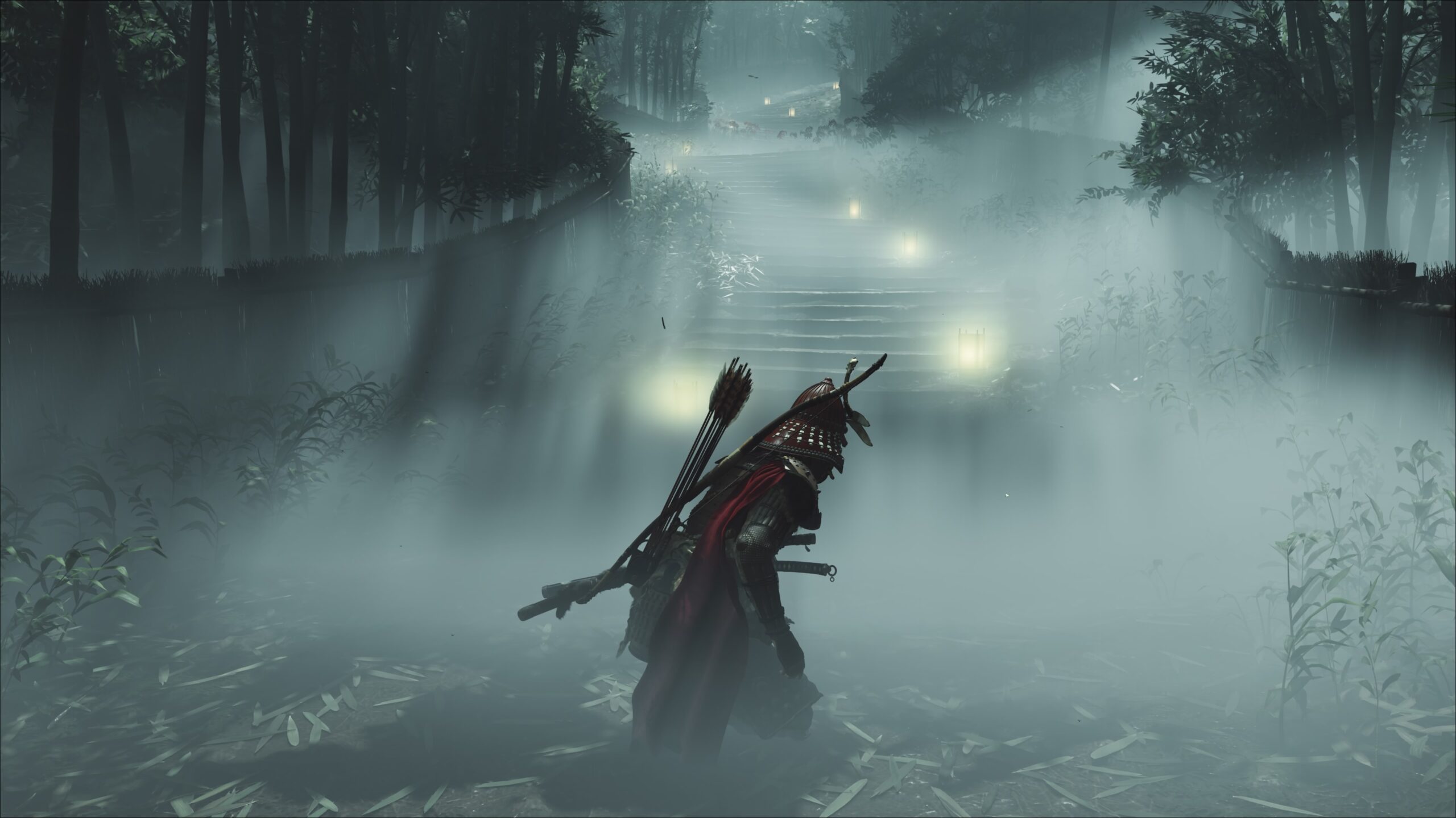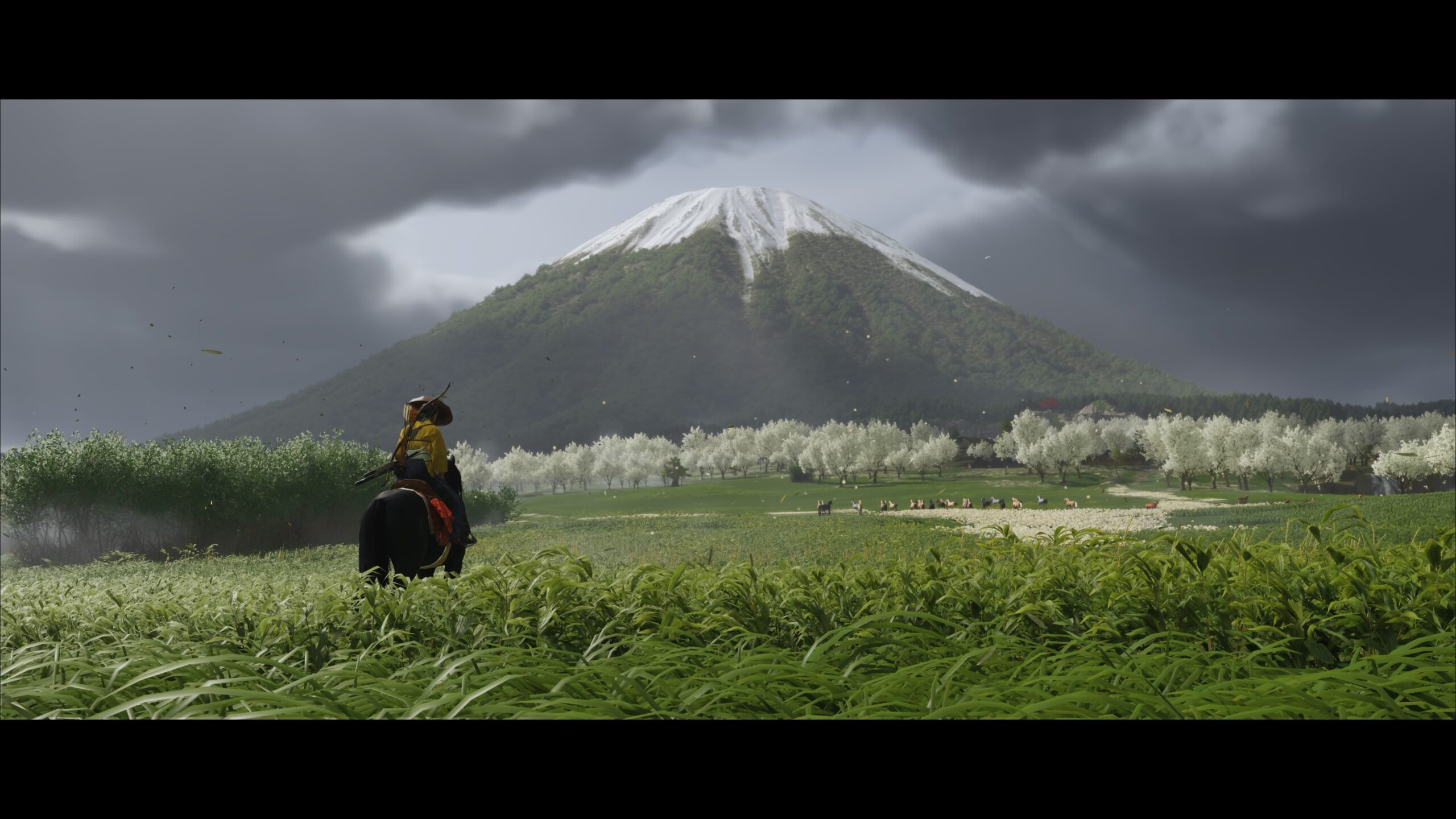 Les graphismes du jeu sont absolument magnifiques, comme ils l’étaient dans le titre précédent. On galope à travers des champs de hautes herbes, sous un toit d’arbres en fleurs, dans les hauteurs enneigées des montagnes du nord. Les personnages sont très détaillés, de leurs expressions faciales à leurs vêtements. Les ennemis finissent par se ressembler, compte tenu du nombre incroyable qu’Atsu va anéantir dans sa mission, mais cela ne vient pas trop affecter l’expérience de jeu. Chaque fois que le soleil se lève, le jeu nous donne des images à couper le souffle.