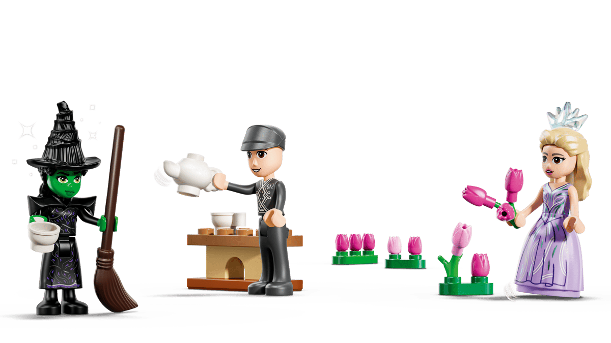 Cet ensemble qui plaira à tous les adeptes de Wicked nous emmène à Munchkinland en compagnie de Glinda Upland, Elphaba Thropp et Boq, les trois figurines incluses dans l’ensemble. Il comprend la maison de Boq et la bulle de Glinda, posée dans le champ de tulipes.