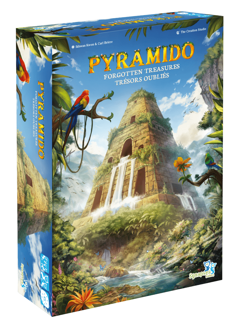 Dans le même univers que Pyramido paru en 2023, le concept a évolué pour offrir davantage de place à la stratégie et nous permettre un meilleur contrôle sur la manière de marquer nos points. Carl Brière, fondateur de la maison d’édition Synapses Games, y a apporté sa touche magique en cosignant le jeu aux côtés d’Ikhwan Kwon, l’auteur original. Voici ce que j’en ai pensé.